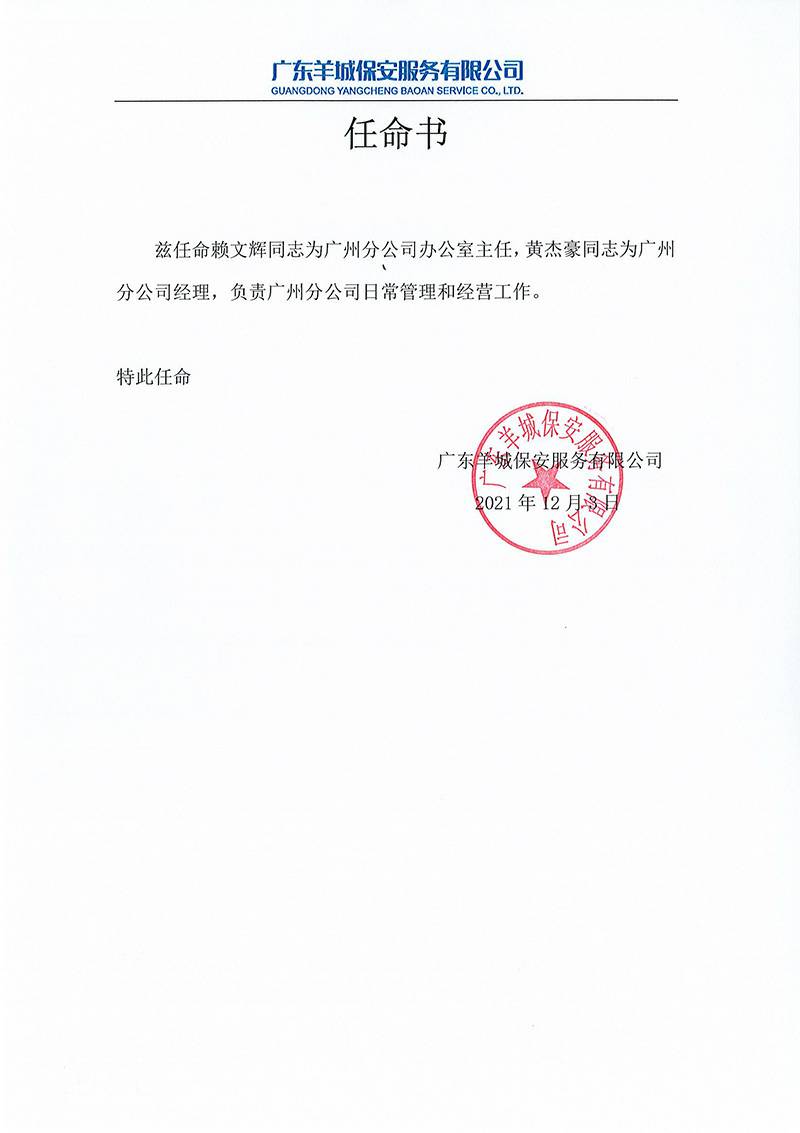 开云网页版·官方站入口-开云(中国) 关于黄杰豪与赖文辉的任命书正式通知